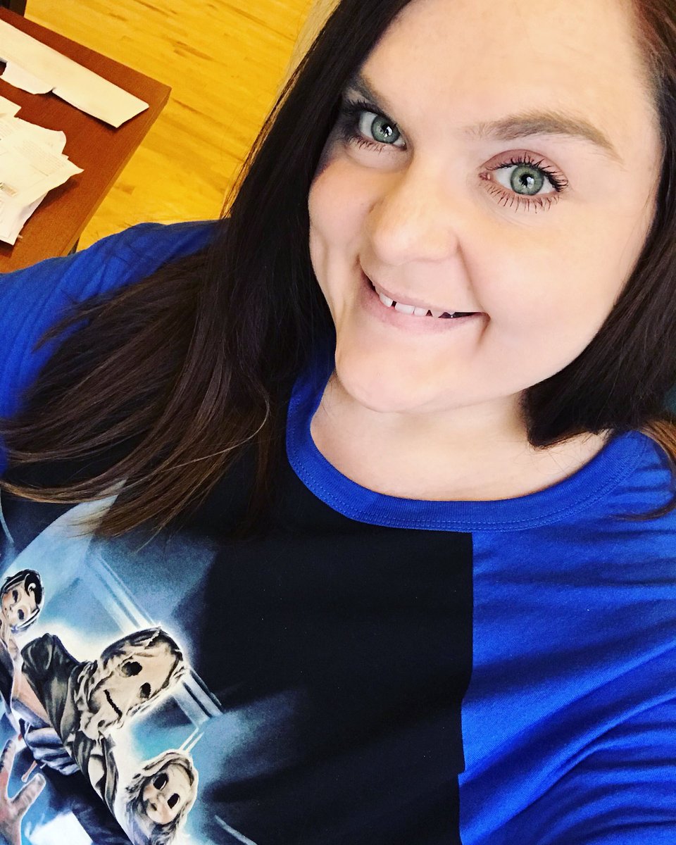#TheStrangersPreyAtNight kinda day! Sportin our#FrightRags baseball tee & listening to the awesome#Soundtrack at the office! What are you listening to today?#Horror#Stalkers#Psychopaths#PreyAtNight#TheStrangers#LetUsPrey#Music#Score@DamianMaffei@BaileeMadisonpic.twitter.com/DJDDsIN9Au
