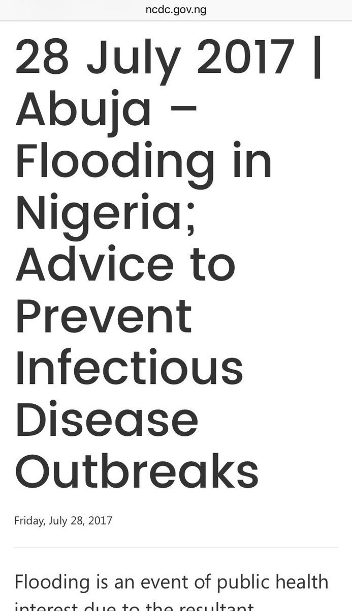 #flooding in#Nigeria. Read our#PublicHealth advice on flooding here: http://www.ncdc.gov.ng/news/89/28-july-2017-%7C-abuja-%E2%80%93-flooding-in-nigeria%3B-advice-to-prevent-infectious-disease-outbreaks …pic.twitter.com/lrTXnOKmAl