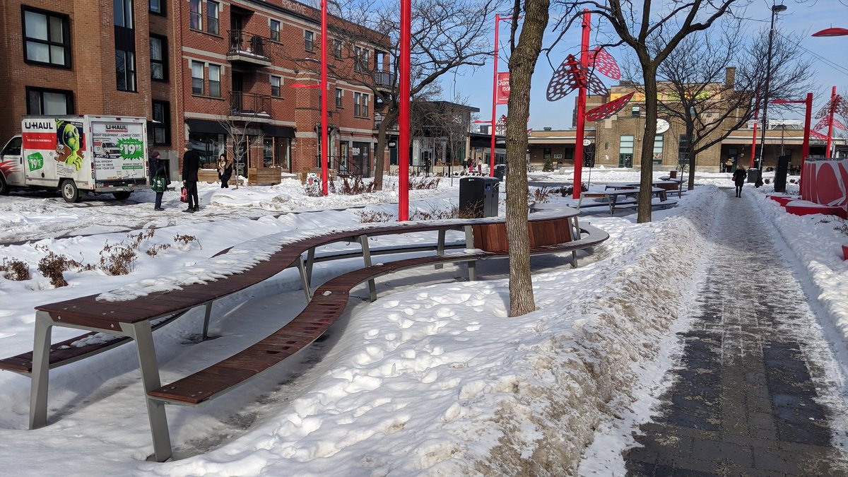 #Montreal right beside the@marchejeantalon. Curious if it's well animated with people in the warmer months!#publicspace pic.twitter.com/lHMjomn2BL