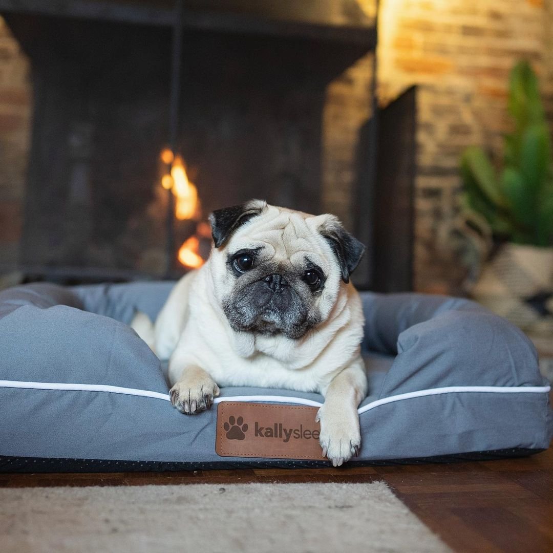 A pug, standing in some cosmic, otherworldly grass. On the planet with an orange sun, pugs are a