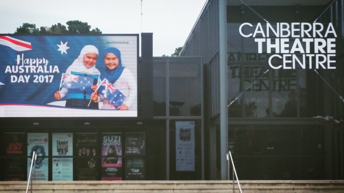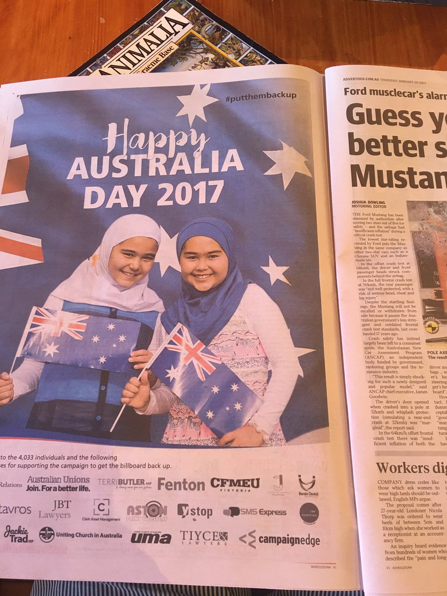 #PutThemBackUp#AustraliaDay billboard with girls in hijabshttp://bit.ly/2kqVMUR -