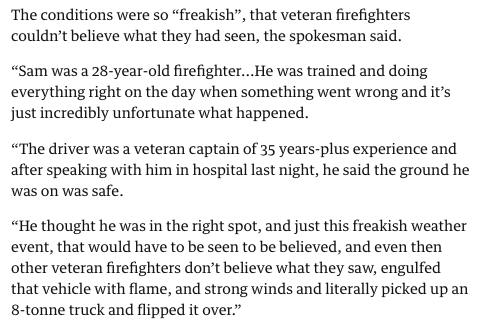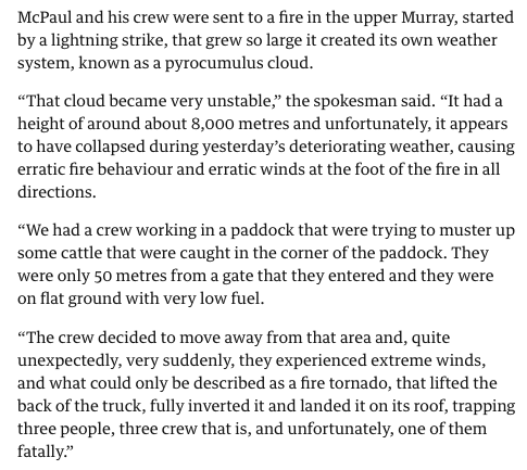 #BushfireCrisis characterized by extreme fire behavior driven by vigorous#pyroCumulonimbus clouds. Reports of large fire vortices. https://twitter.com/heldavidson/status/1211824093932056576 …