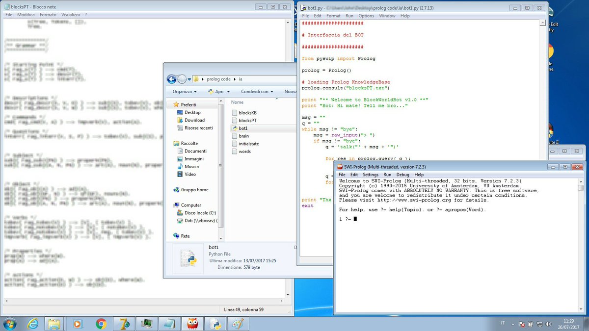 #lavoro di oggi?#python +#prolog Non ci facciamo mancare niente, figuriamoci#IntelligenzaArtificiale