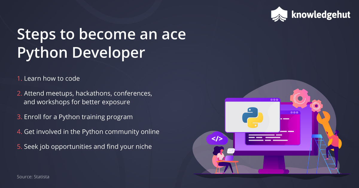 It takes 5 important steps to become a good Python developer.
