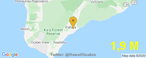 USGS reports: M1,9 Earthquake 3km SE of Pahala, Hawaii, Depth 34,8 Km @ 2020-02-04 04:27:36 HST. More info: https://earthquake.usgs.gov/earthquakes/eventpage/hv71368377 …