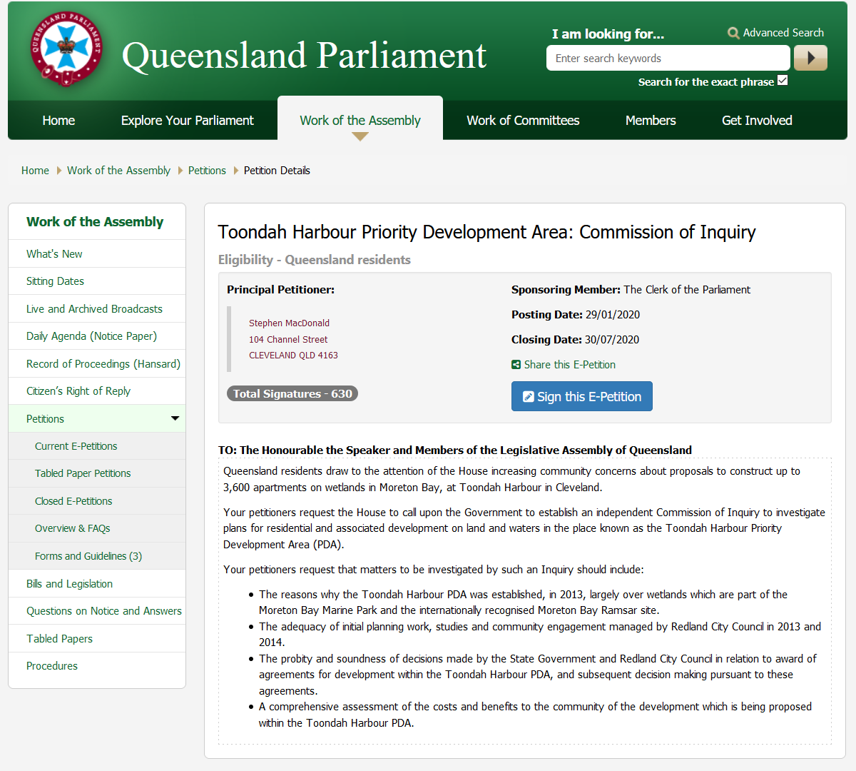 E-Petition to Queensland Parliament calls for independent Inquiry into plans to develop 3,600 apartments on wetlands in Moreton Bay, at Toondah Harbour. Any Queensland resident can sign, here's the link: http://bit.ly/ToondahInquiryPetitionQld …