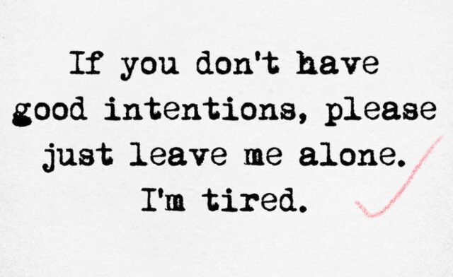 If you don’t have good intentions, please leave me alone, I’m tired!