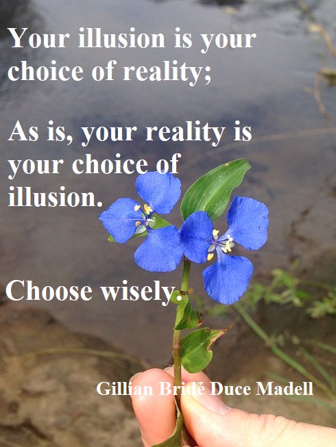 Your illusion is your choice of reality; As is, your reality is your choice of illusion. Choose wisely.