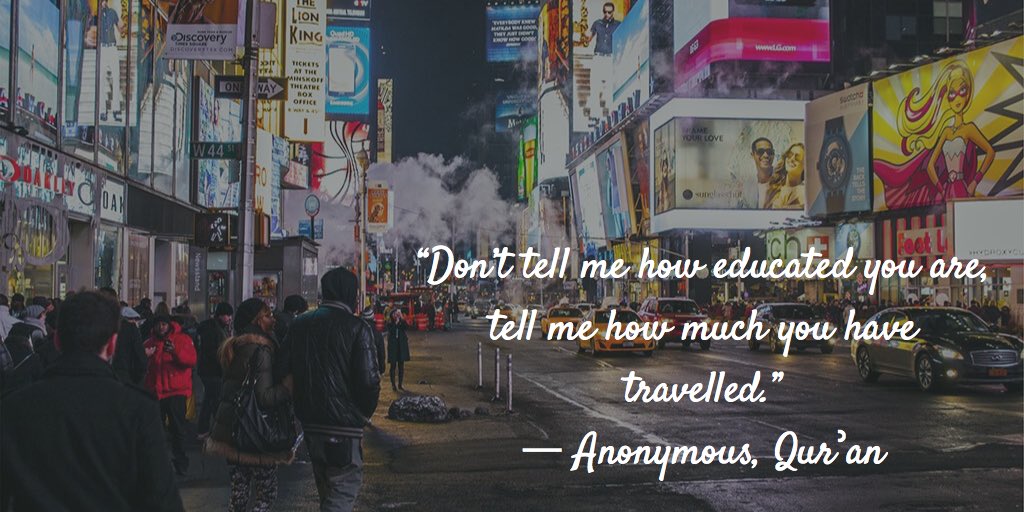 “Don’t tell me how educated you are, tell me how much you have travelled.” ~ Anonymous, Qurʾan