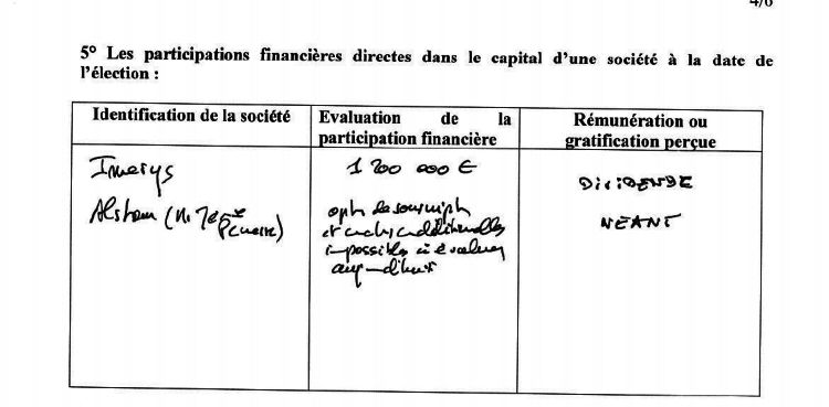 Dans sa déclaration de patrimoine pour les