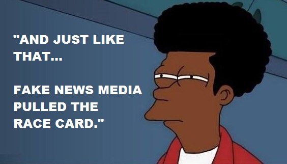 #FAKENEWSMEDIA#PULLED THE#RACECARD."#NotSureIf#JustLikeThat#BlacksFotTrump#MakeAmericaGreatAgain#POTUS45pic.twitter.com/XNDxwW1zpx