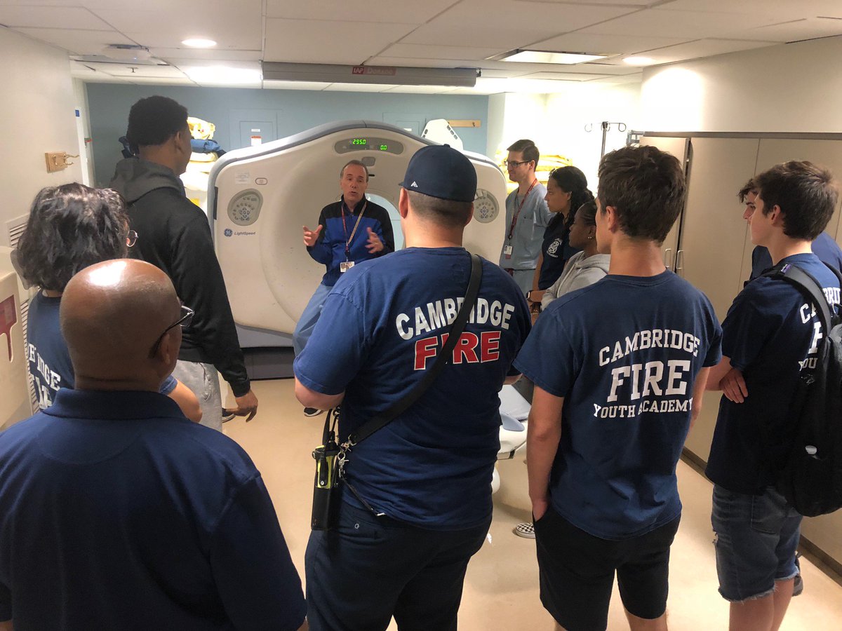 Summer Youth Academy students working with their Cambridge Firefighter mentors came to check out our CT scanner today for a simulated trauma!