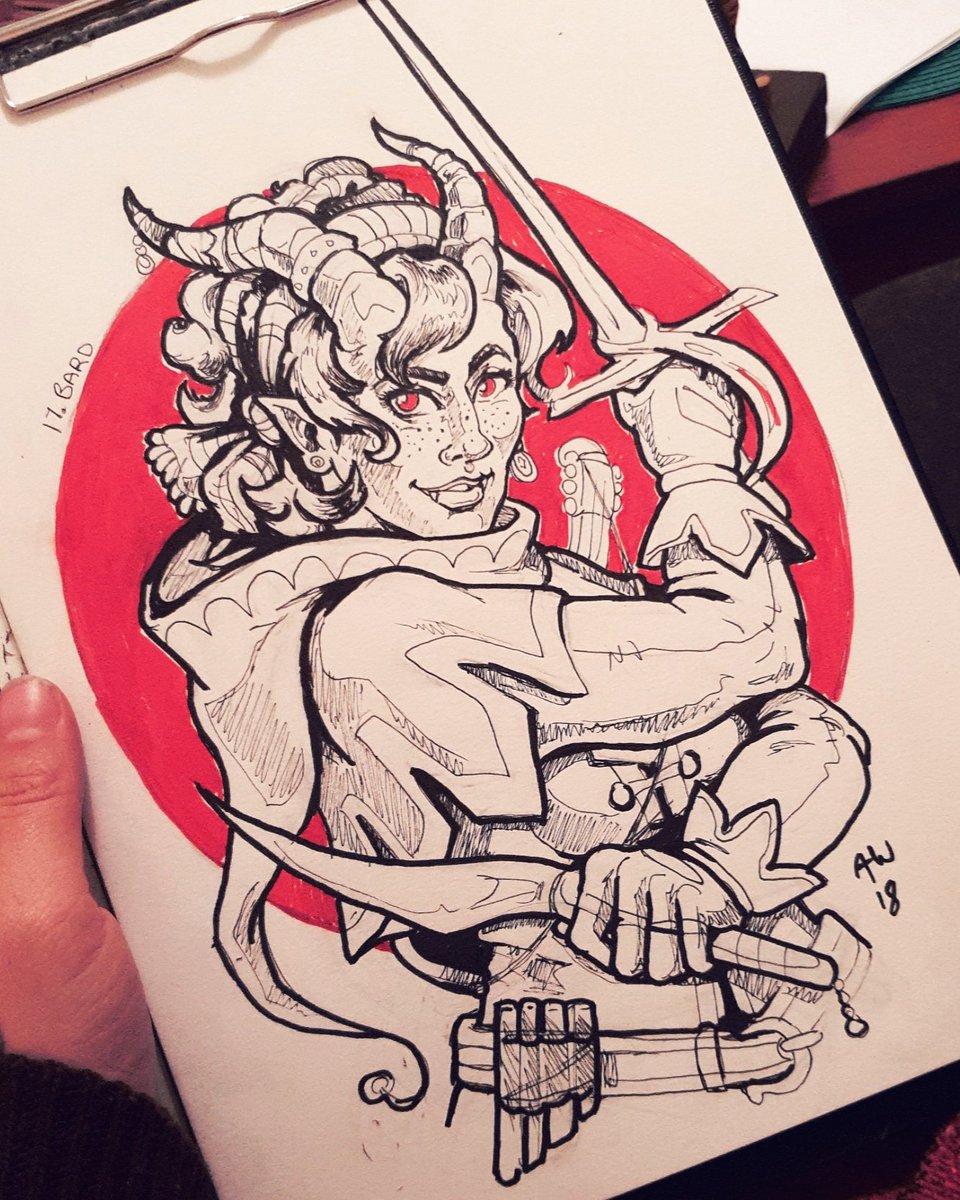 #tiefling#bard#inktober2018#inktober#dndtober#dndcharacter#dnd5e#collegeofsatire#rapier#dndrawtober#instasketch#illustragram#characterdesign#tiefling#horns#inktoberday17pic.twitter.com/MH3PyRFure