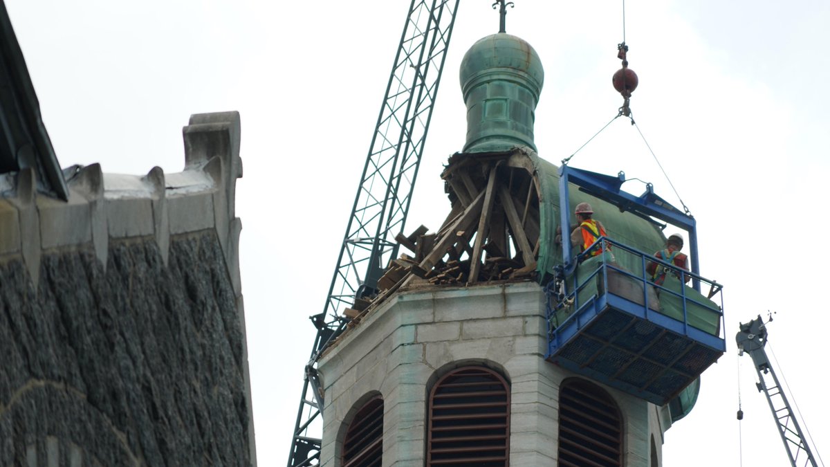 La démolition de l'église St-Coeur-de-Marie a bien débuté ce matin vers 7h30. Voici à 12h où en sont rendus les travaux