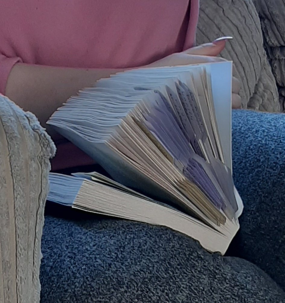 My 16 year old is reading 'a good girls guide to murder' look at her post it notes as shes trying to solve it along the way