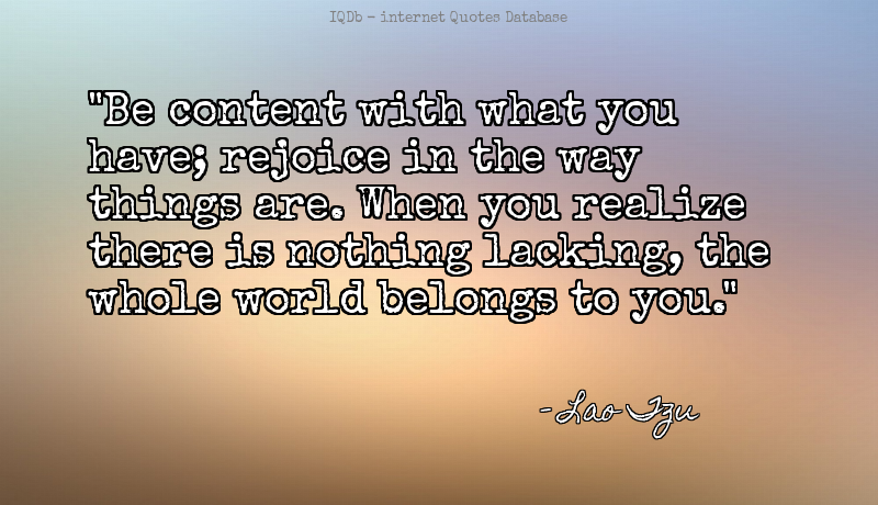 Be content with what you have; rejoice in the way things are. ...