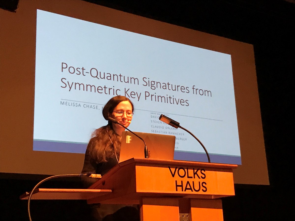 14. Melissa Chase is presenting LIVE at on post-quantum signatures. presents the SIKE encryption scheme at 9:30am CET. Watch now: