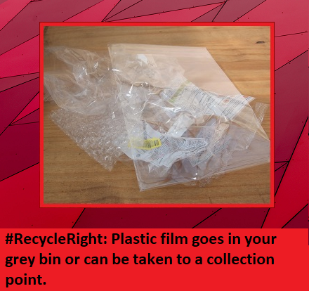 #RecycleRight: Plastic film goes in your grey bin or can be taken to a collection point. pic.twitter.com/8IWHe0zpqE