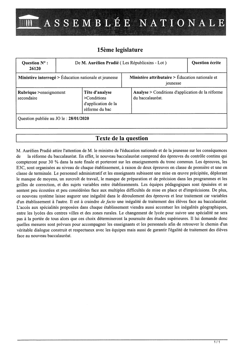 #reformedubac : la nouvelle réforme du#baccalaureat laisse augurer une inégalité de traitement des élèves lors des épreuves d'un établissement à l'autre. Les équipes pédagogiques sont épuisées par les imprécisions de cette mise en place. J'écris auj. au ministre@jmblanquer