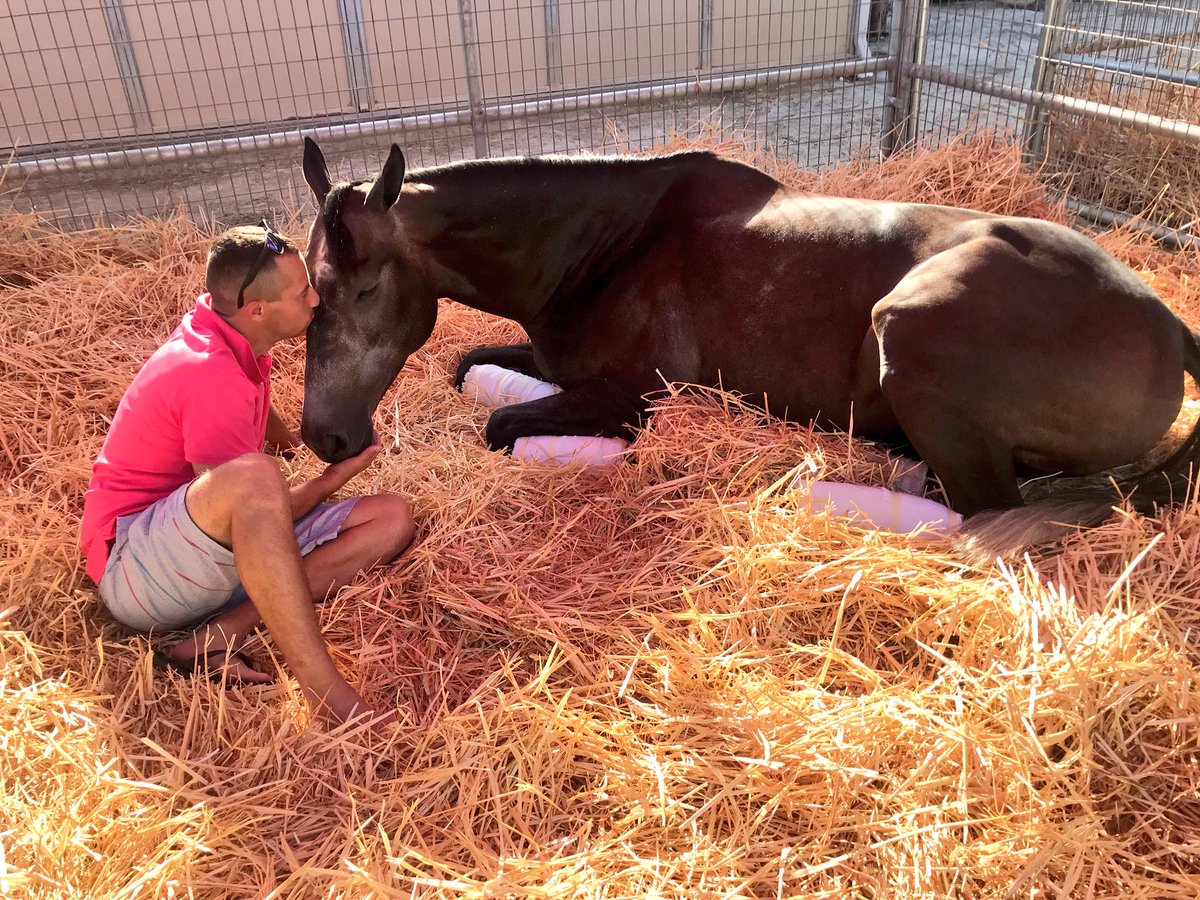 @DelMarRacing after being purchased last Monday@FasigTiptonCo by@natemccauley and@MeahLloyd for owners@RaceAbbondanza. Love to see them lay down, especially after a long day and night of shipping.#Relaxed#AllClass #