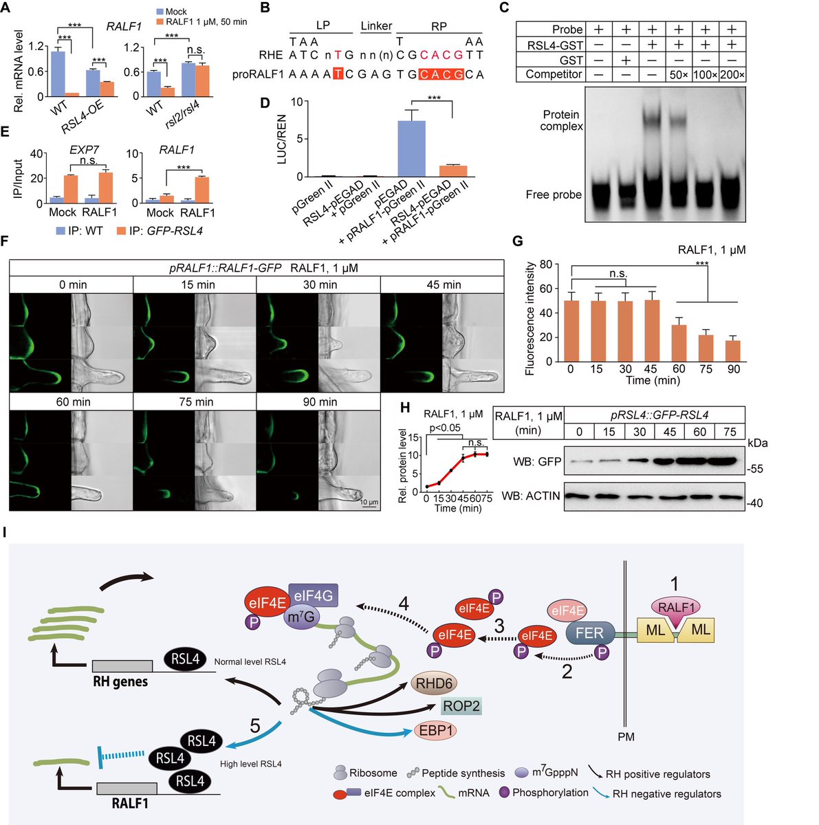The RALF1–FERONIA complex phosphorylates eIF4E1 to promote protein synthesis and polar root hair growth