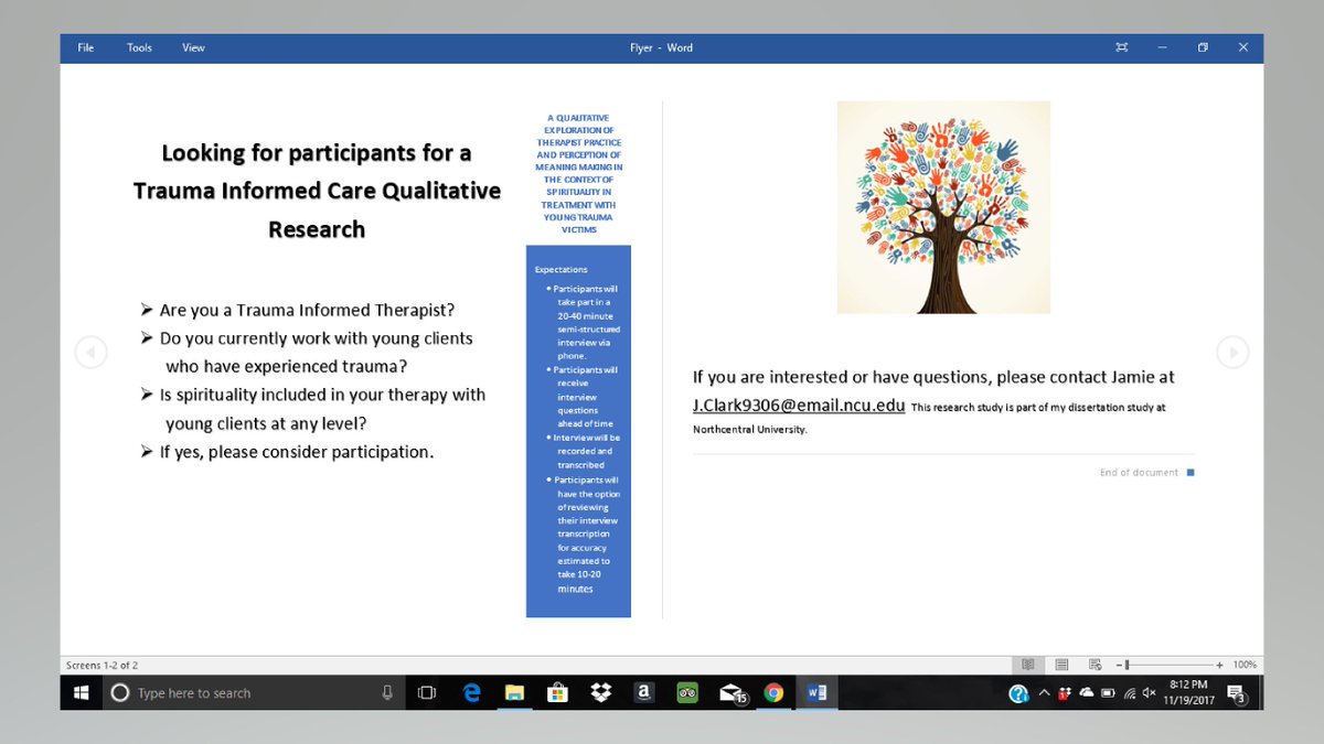 Looking for Trauma Informed Therapists to participate in a study. See attached. Please share.