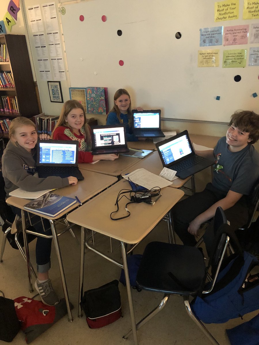 6th grade ELA students are pros @ using tech to showcase their research! Ms. Zaharis’ class is using google slides &