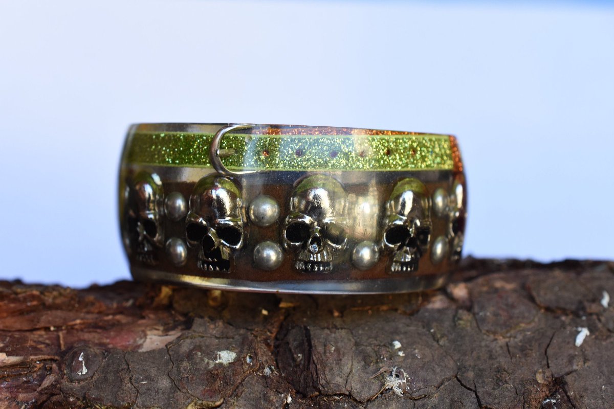 #etsy : leather skull rivet resin bangle#bijoux#bracelet#cuir#punkettatouages https://etsy.me/3562NNP#rivet#clou#rockjewel#punkjewel#resinjewel#glitterbangle#rebel#badass#skull#cute#silver#girly#modepic.twitter.com/D0mA9n9Z94
