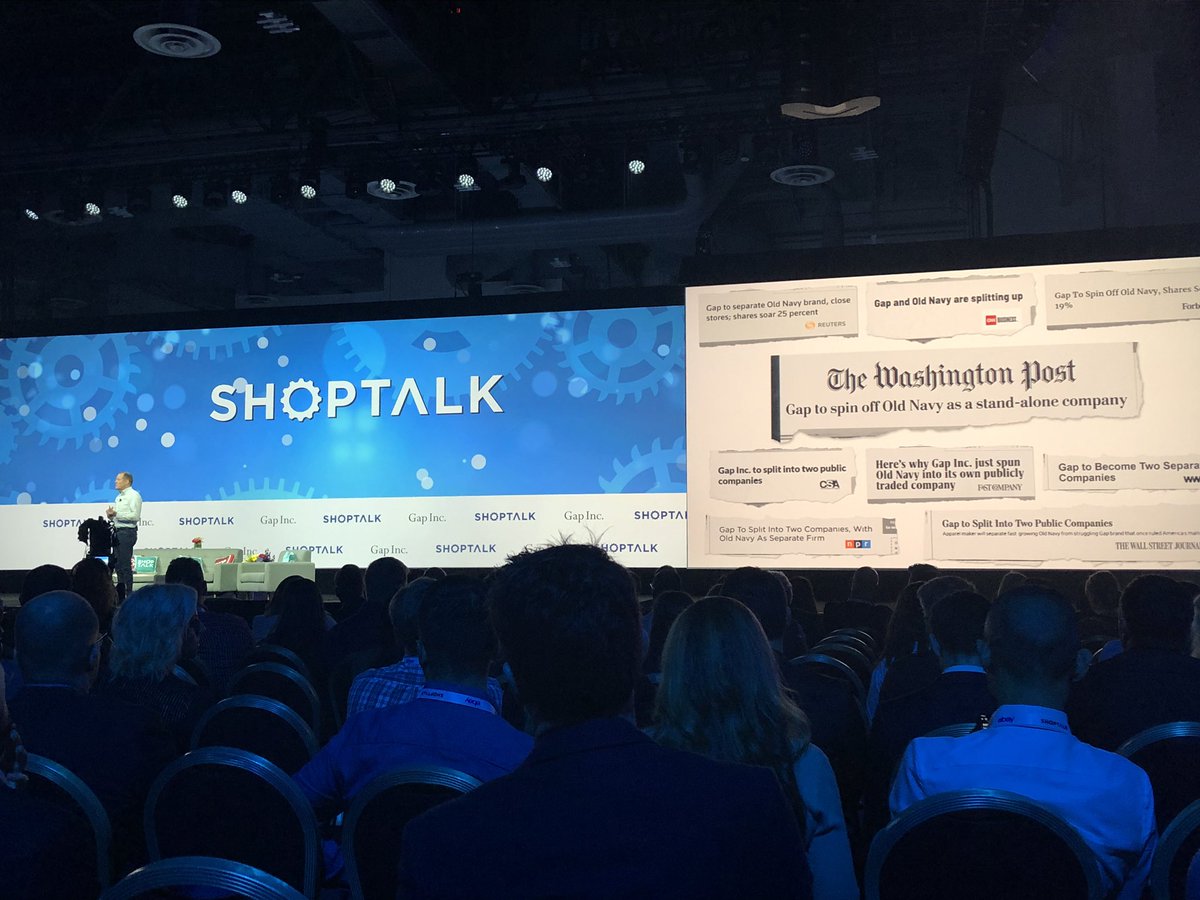 @GapInc President & CEO Art Peck on “bringing big data and data analytics to the store to gain a longitudinal view of the customer and build in predictive demand at style and CC levels.”#shoptalk19#retailinsights pic.twitter.com/y2g2wErvd9