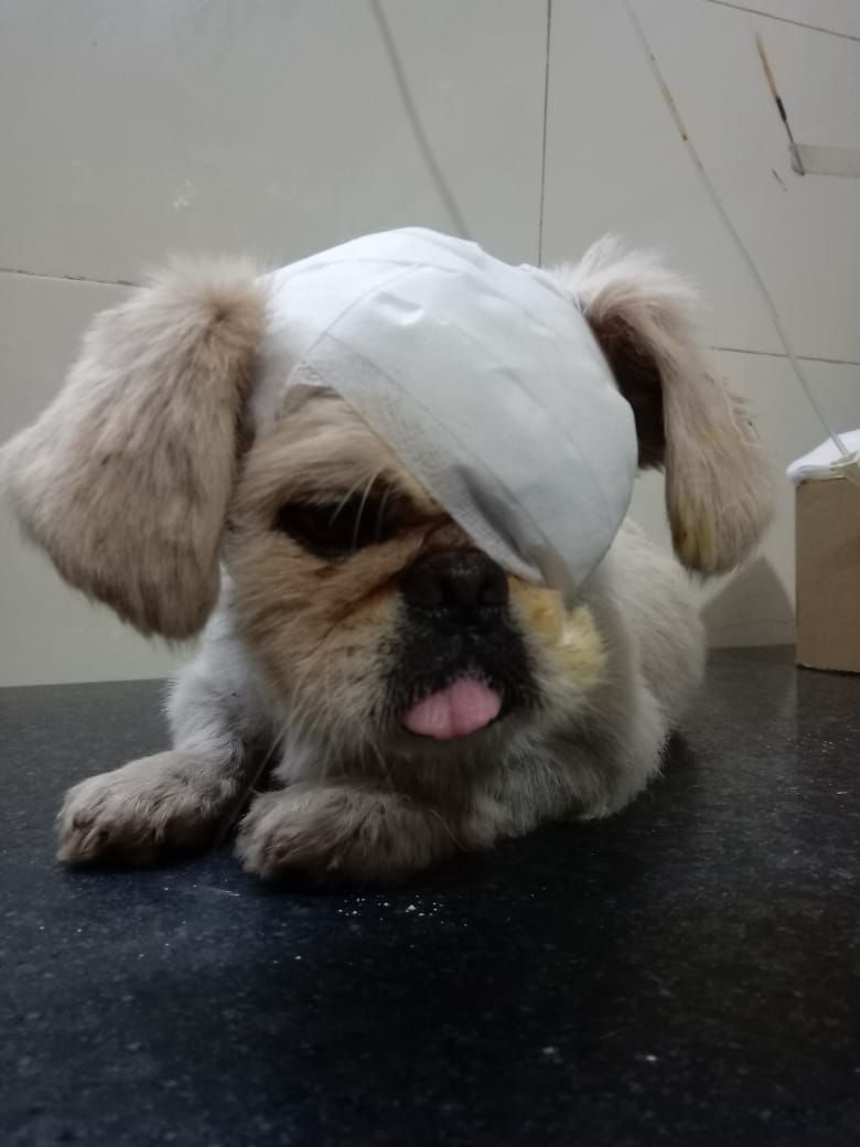 #LhasaApso we rescued from the#LajpatNagar Market last week. When we found him, his left eye was popped out. It had to be surgically removed immediately. He is recovering well now Boogie is very enthusiastic about gentle cuddles, and getting#retweets pic.twitter.com/tI3Xfef5eB
