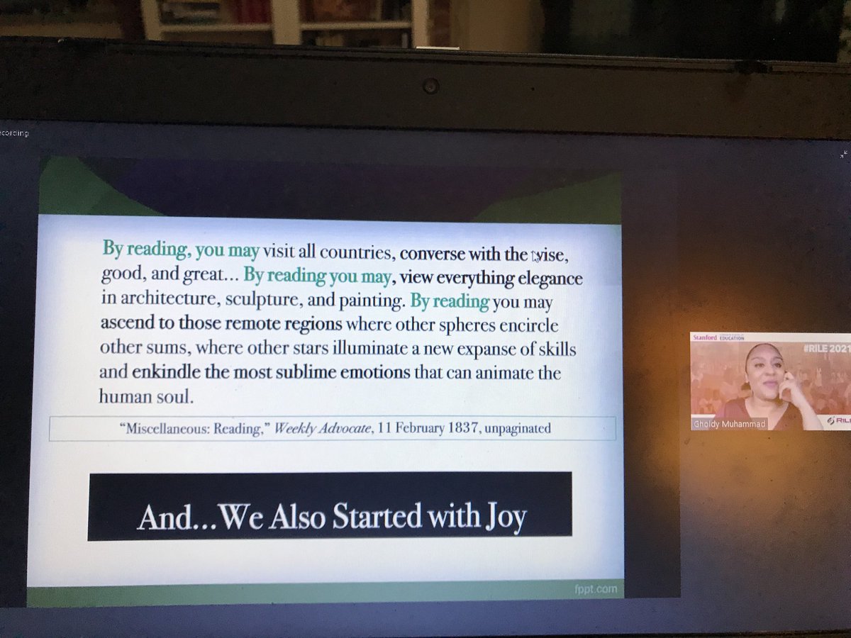 #RILE2021 talk from last week! This entire session is deeply poetic —@GholdyM asks, “are we cultivating intellectual feasts for our students? Because a feast is one where you feel full, nourished, and complete” WOW.