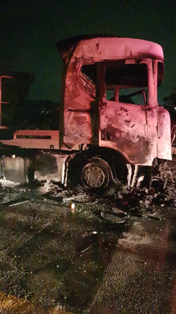 #RIOTS#VANDALISM TRUCK TORCHED : BENONI. COE. GP. KINGSWAY ROAD AT 4-WAY OPPOSITE LIBRARY.pic.twitter.com/90WrDo9S2R