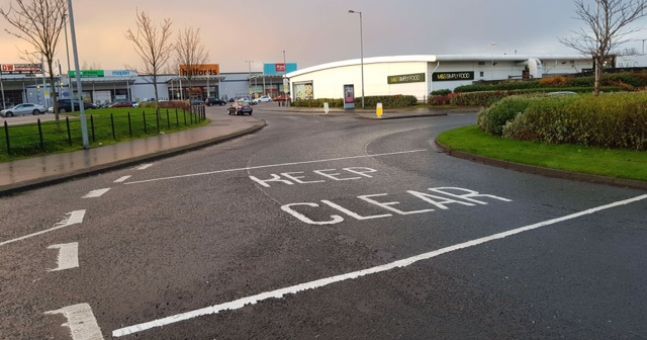 #RoadMarking has been put down at Crescent Link Retail Park to help residents being trapped within their homes during the Holiday seasons. Make sure you’re respectful on local residents in your shopping districts.#RoadSafety https://buff.ly/2irbwrA pic.twitter.com/S5BaYYOYXI