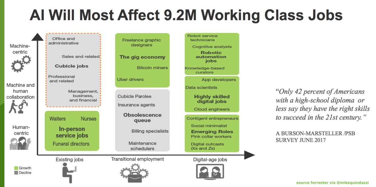 #FutureofWork?#AI will most likely affect 9.2 million working class#jobs. http://bit.ly/2B4tibB#Robotics#AutonomousVehicles#MachineLearning MT@vizworld via@forrester@uipathpic.twitter.com/NQ3o0cYXBM