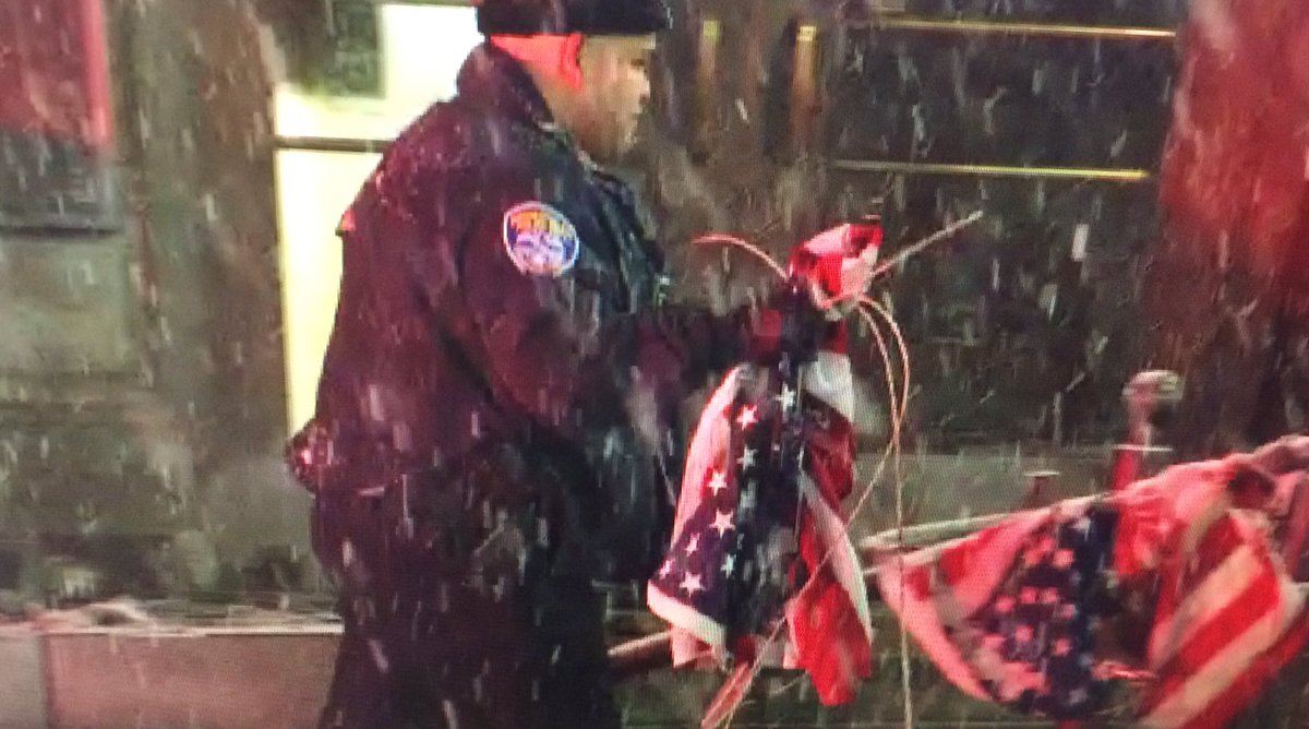 This RPD officer took care of at least 4 American flags that were knocked over at the County office building on west main after crash.