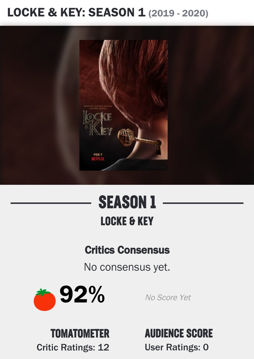 #LockeAndKey#Netflix starts at 92% on#RottenTomatoes! (12/1) pic.twitter.com/h3w0TML4Tp