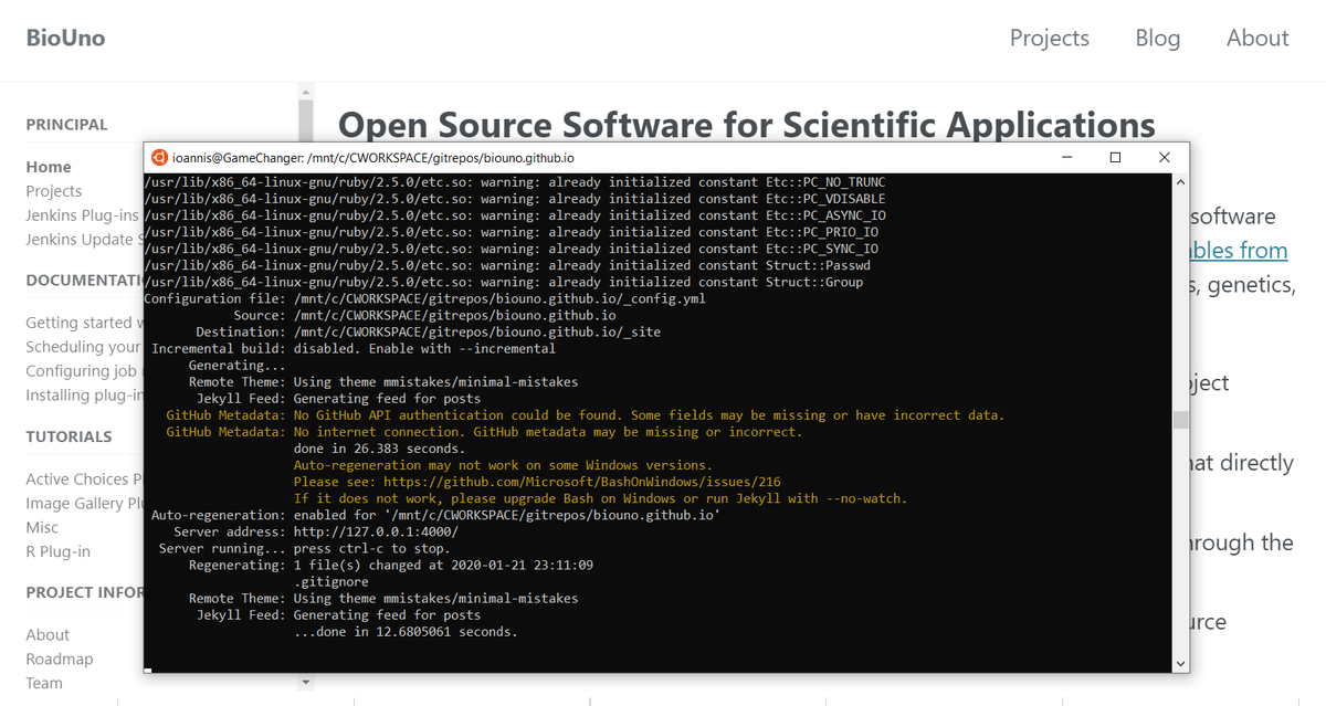 @jekyllrb the#RubyLang static web pages and blog framework running on@ubuntu#Windows10 thanks to#WSL Windows Subsystem for#Linux . Time for new@biouno content. http://biouno.org/about.html pic.twitter.com/610Wjvl3QO