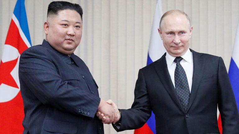#Russia#Putin ha incontrato a Vladivostok il leader della#CoreadelNord#KimJongUn. I due leader hanno in programma un vertice di circa 4 ore, dove discuteranno le loro relazioni bilaterali e il controverso programma nucleare.pic.twitter.com/24rjrMYbfg