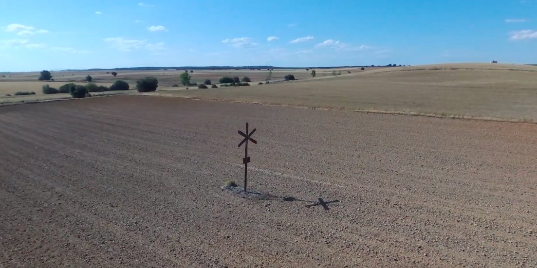 Con esta solitaria señal ferroviaria en medio de una tierra de cultivo finaliza el magnífico documental elaborado por