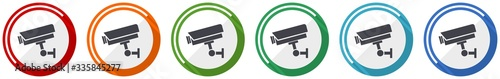 Cctv camera icon set, flat design vector illustration in 6 colors options for webdesign and mobile applications