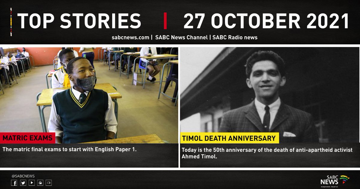 #SABCNews Top Stories | 27 October 2021 Visit http://sabcnews.com for the latest on these stories and more. pic.twitter.com/O09R1l7Eq6