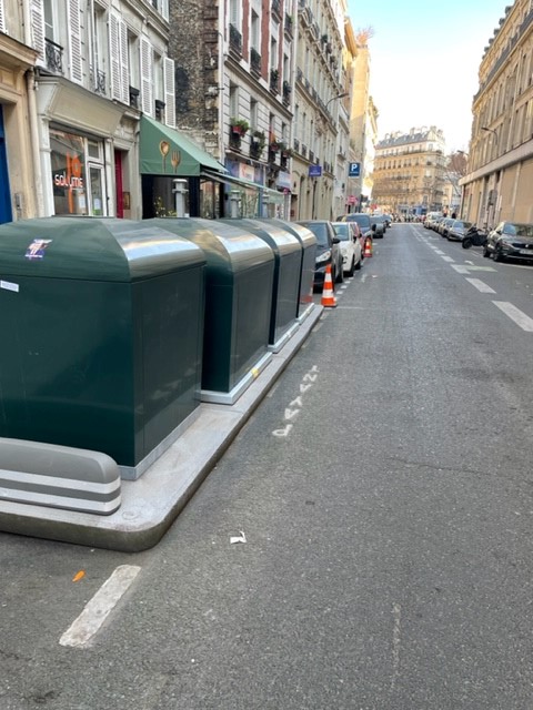 Nouveauté rue de malte, encore 3 superbes poubelles géantes définitives pour votre grand plaisir et par la même occasion bien sur suppression de 3 places de stationnement
