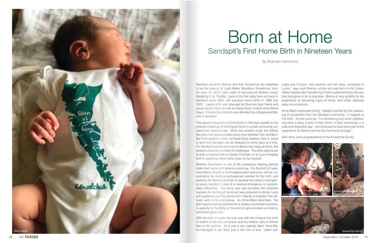 #Sandspit celebrated their first home birth in 19 years! Congratulations to Brenna Kowalchuk and family, and midwife Anne Marie Cayer. Welcome baby Layla!#homebirth#choiceofbirthplace#ruralmidwifery#bringbirthback#haidagwaii https://www.yumpu.com/en/document/read/62826928/hgt-magazine-101-september-october-2019/29 …pic.twitter.com/yybJNJo4aJ