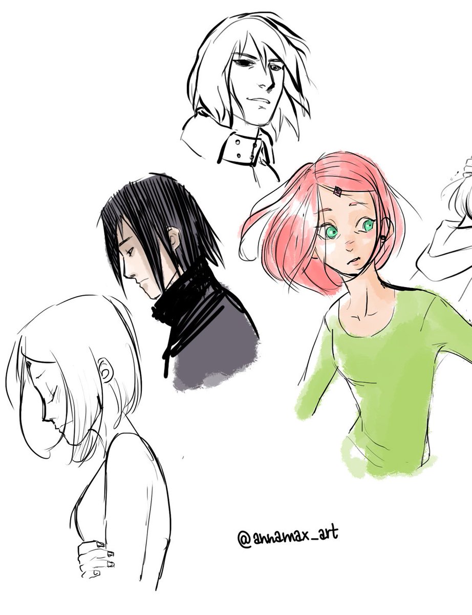 I’ve always imagined Sasuke (who rarely - or never - laughs) laughing his ass off listening to Kizashi’s bad jokes. Next are some random sketches! ^_^ Happy SasuSaku Month 2018!