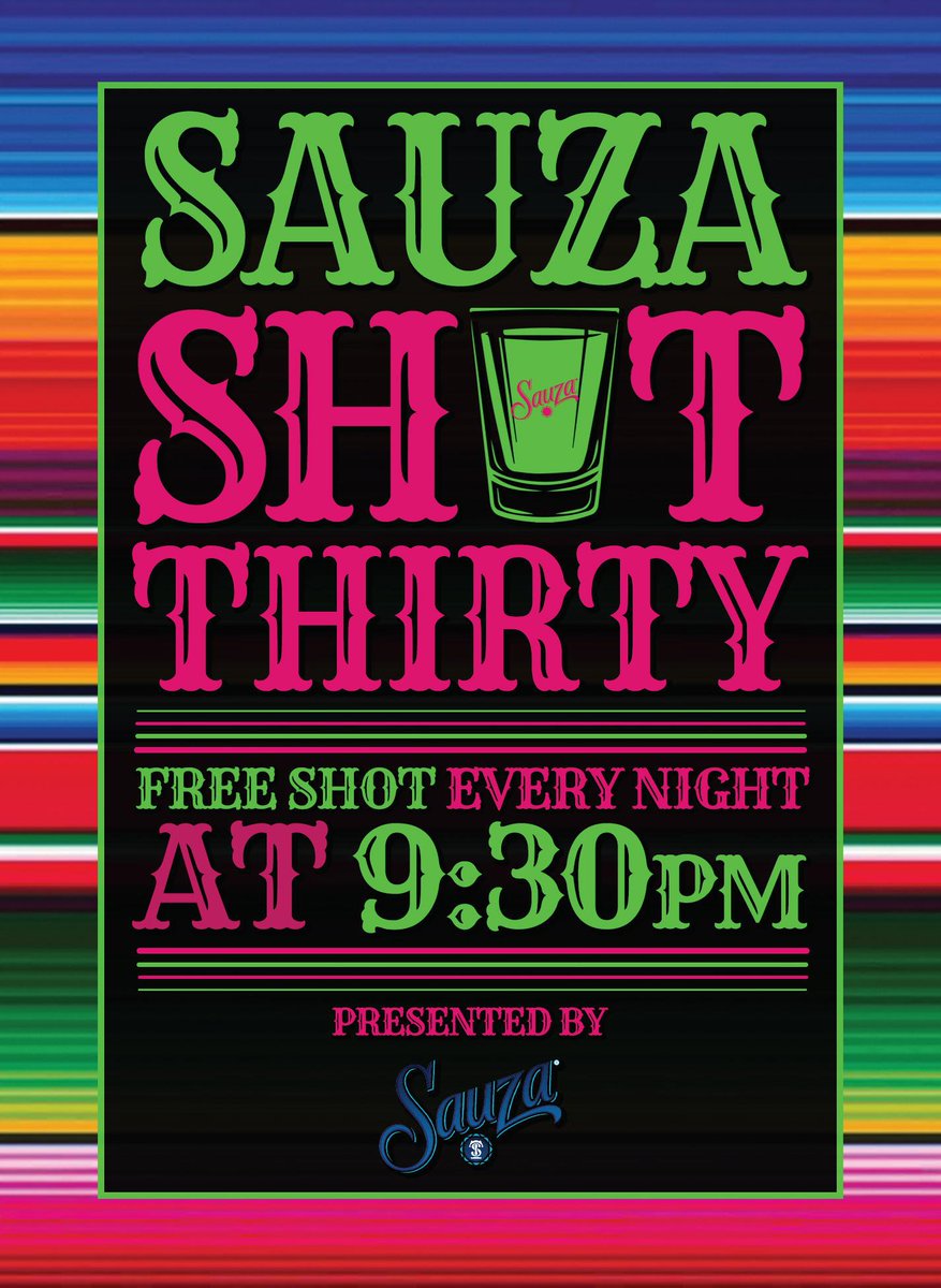 @Sauza at 9:30pm every night if you're dining in with us!#Sauza pic.twitter.com/ZOnT8mdFVA