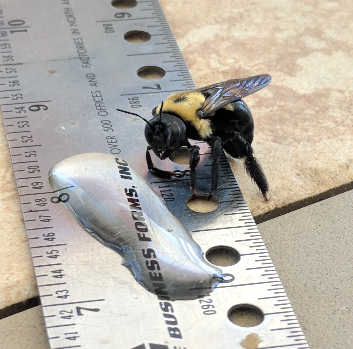 Barry Bee was drowning in my water bowl. Dad mounted a