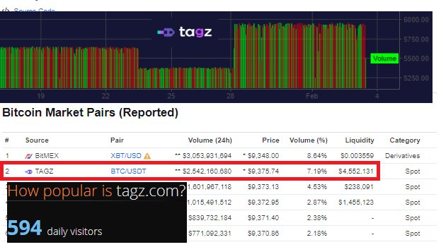 @CoinMarketCap#data are a F! crime against Humanity, so fake, so misleading...#Tagz is #2, excluded (censored) scamadox vol by#coinmarketscam Asterisks**, Tagz is a blatant washtrade#scam exchange with only 594 daily visitors...