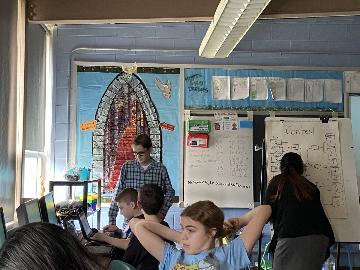 Grace, Naomi and Grady had 6B students compete for top honors in Nitrotype during their technology class. Everyone had a blast! Congratulations 8th graders on a super good job being teachers!