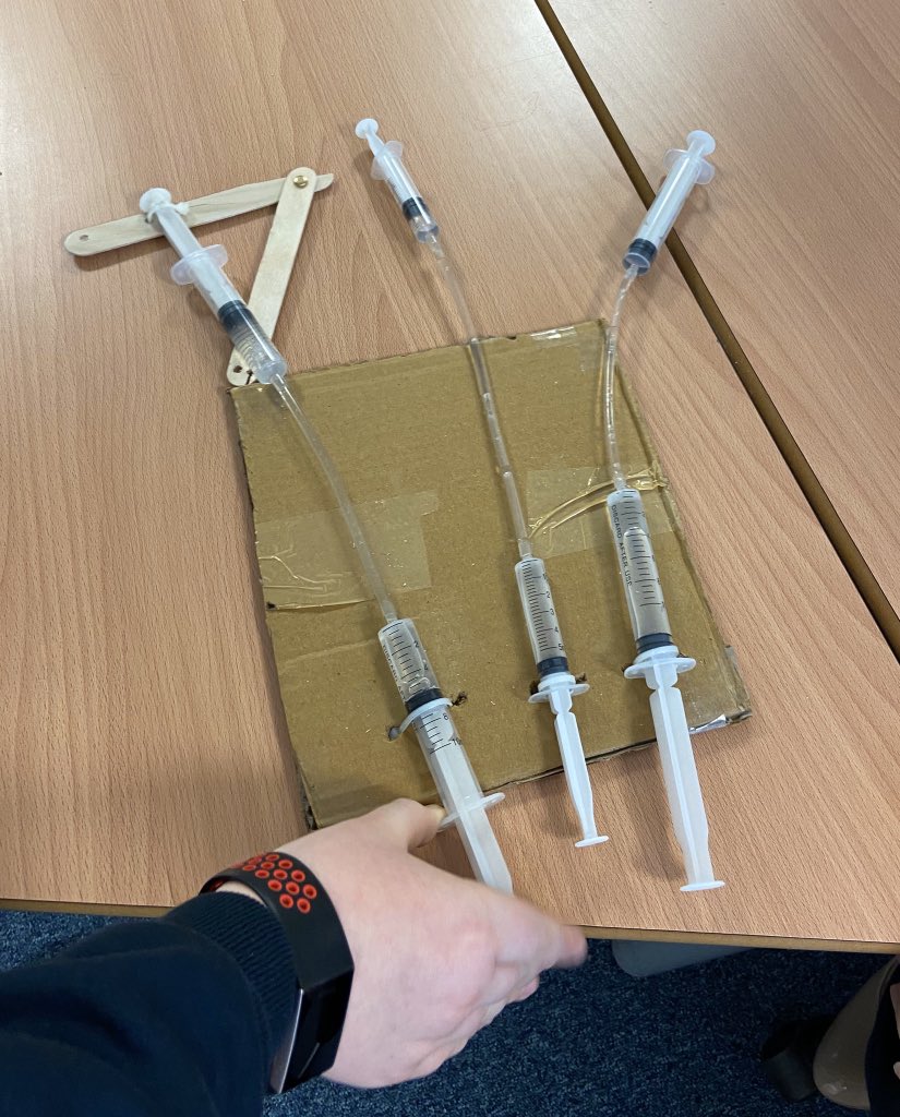 Alex in year 5 has developed this moving arm today using hydraulics!