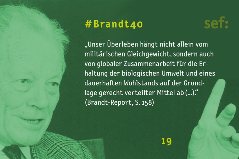 Vor 40 Jahren mahnte die Nord-Süd-Kommission, internationale Zusammenarbeit nicht nur aus machtpolitischer Perspektive zu betreiben. Faire Entwicklungschancen und der Erhalt der natürlichen Lebensgrundlagen bleiben Schlüsselaufgaben: https://www.sef-bonn.org/sef/geschichte/brandt40.html …
